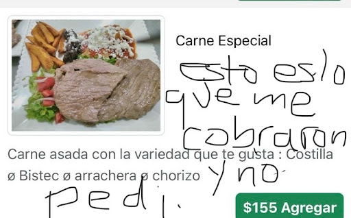 La comida regular, pero cuando ordené pedí milanesa con papas con un costo de $95 pero cuando me llegó la cuenta me cobraron $155 y me lo cobraron como plato de carne especial, cosa que yo no pedí. Claramente le dije al mesero MILANESA CON PAPAS. Además me salió un pelo en mi comida y no era mi pelo xq yo tengo el pelo rojo con negro y el pelo era castaño. El dueño en ves de solucionar el problema se puro altanero y muy despota. Además negrean a sus trabajadores xq cuando un conocido mío trabajo ahí le dijeron que le pagarían la capacitación y nunca le pagaron nada ni siquiera la semana que trabajo ahí. No pedí el menú especial y yo también tengo fotos de lo que pedí y de lo que me cobraron. Son unos rateros. Se lo que me comí y el especial es de carne de res y lo que yo me comí era pollo. Los voy a denunciar a la profeco x rateros.el dinero no es el problema tengo para pagar te pude dar $100 dólares, pero engañan a la gente con un precio que al final termina siento otro precio uy un menú que no pediste. No me quise ir sin pagar solo quería pagar la cantidad verdadero no la que usted quiso cobrarme..aparte de ratero mentiroso!!!cuando hicimos el reclamo ya le habíamos pagado. Mi coraje es que te cobran x algo que no ordenaste, si el mesero me hubiera dicho que me cobraría extra x las papas se entiende, pero no respetan el precio. En que se parece una carne de res especial a...