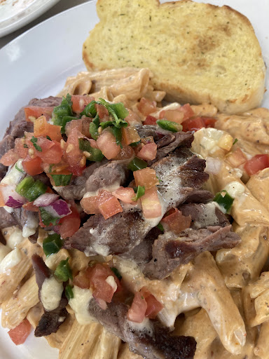 *chipotle pesto pasta de res ($265) 7/10 en realidad la salsa de la pasta es deliciosa pero el sabor es hartante casi a la mitad del platillo