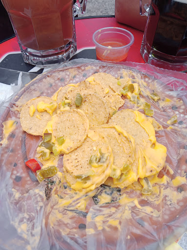 Pues el ambiente es siper bueno, lo unico que no le encuentro sentido es que te dejan pasar a co.er con cubrebocas, pero adentro te lo puedes quitar, si no traes cubrebocas no pasas :v, otra que ni me gusta es que si vas a fumar de hecho te ponen al aire libre a comer con unas sombrillas, pero lit si fumas tines que salirte del área al aire libre y consumir tu cigarro, no hay logica de ahi en fuera puedo recomendarles como entrada una bebida de mezcal de sabor, ay de pepino, mango y tamarindo o tragos (shots) de .ezcar con unas alitas a la BBQ, y unas papas a la francesa con condimentos super...