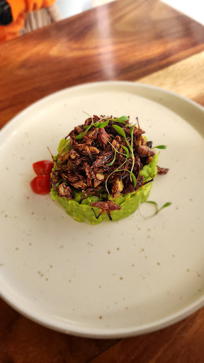 Read moreOpinión general después de 3 visitas: Es un lugar agradable, la carta es amplia y llena de opciones saludables, cada ocasión he pedido algo diferente pero siempre tienen algún detalle que no termina de encajar en sus platillos. El guacamole con chapulines, la sensación de comer sano y estético y la atencion es lo que me jala a regresar. Además son amables con los perritos y te dan una bolsita de premios. 3a visita: Fetuccini con camarones, ¡un fallo total!, la crema grumosa, los camarones sobrecocidos y sin limpiar (no le quitan el intestino), le falta mucho sabor. El expresso cortado es rico, solo que si así lo prefieres, pide que lo corten con leche caliente pues lo hacen con leche fría. 2da visita: En esta ocasión pedí el salmón con salsa de jengibre, muy rico aunque al final la salsa empieza a molestar, tal vez podrían ponerle un poco menos y dejarla en la mesa para que el comensal la ponga a su gusto. La bebida es de mango con pepino, muy rica y fresca. Afoggato, definitivamente no es el mejor, el helado no tiene la consistencia adecuada para soportar el calor del expresso, apenas se lo pones, se deshace y te queda un café de vainilla. 1a visita: Buena opción para comer, un menú muy amplio, el guacamole con chapulines es un must!, había muchas opciones de plato fuerte y el que pedí no me encantó "Croquet de salmón" sabores muy fuertes para mi gusto y los espárragos me dicen que venían molidos en el croquet... para la siguiente pediré la otra opción de salmón porque esta no me gustó. La atención es buenísima, son muy amables sin llegar a molestar. Las opciones de comida se ven muy bien, sin duda...