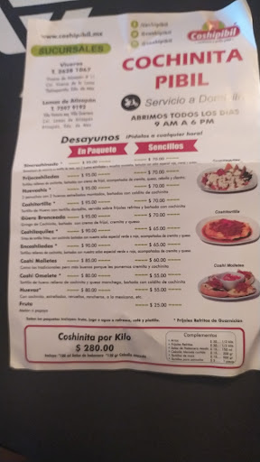 Read moreExcelente lugar para comer cochinita pibil en muchas presentaciones, tacos, panuchos, tortas, burritos, sopes, huaraches, flautas, hasta chiles rellenos de cochinita, en fin. Lo recomiendo ampliamente, el lugar es muy grande, muy limpio y la decoración es muy bonita. Los precios son justos y son muy atentos los meseros. Lo único que no me gustó es que tienen dos tipos de salsas, una que pica y otra que no, pero en realidad ninguna es picante, de lo demás todo muy bien. El play de limón...