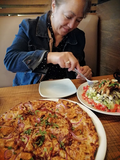 Comida: mi primera visita, me fuí sobre la sugerencia del restaurante; pizza base crunchy con pollo BBQ y acompañamos con una ensalada fresca y BBQ, la verdad, BIEN, parecía mucho para 2 personas pero los alimentos son bastante digeribles y las porciones son bastas vs precio, que igual para algunos no deja de ser "caro" por el hecho de este dentro de Galerías (lo dejo a consideración) , acompañamos con una chela y una naranjada natural (refill), total: 442$, sí puedes hacer sobremesa