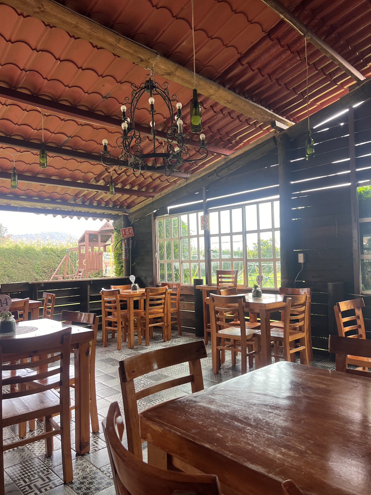 El lugar es bastante bonito y tiene una vista hermosa. Su servicio es pésimo... Para empezar pedí una jarra de agua que nunca llegó (comimos en seco). Pedí unas quesadillas ni salsa me llevaron. Mi hijo pidió una hamburguesa (incluye papas y aros de cebolla) pues solo me llevaron papas, cuando pregunté porque no me trajeron los aros me dijeron que no había que en su lugar me podían traer más papas y les dije que si, pues las papas nunca llegaron despues de preguntar 3 veces por ellas (ya había pasado media hora) me dijeron que si había aros que los estaban preparando y así paso otra media hora, terminamos de comer y los aros nunca llegaron, pedí catsup que nunca me la trajeron porque solo hay una botella para todo el restaurante (tuve que pararme a la otra mesa a pedirla, asi mismo los de otra mesa vinieron a pedirla). Cuando pedí para llevar lo que a mi hijo le sobró de su hamburguesa, me pusieron ahí los aros de cebolla (2 y todos quemados). Pedí la cuenta nunca llegó, tuve que ir a pedirla directamente a caja, en el ticket me cobraban el agua, se les dijo que no la habían llevado y corrigieron el ticket. Obviamente no dejamos propina. Lo verdaderamente decepcionante fue cuando me queje del mal servicio, su respuesta fue: Es que estamos llenos y pues hay mucha gente por eso. Lo mínimo que esperaba era una disculpa y al contrario recibí una mala cara (decepcionante su actitud y que no sepan cómo tratar a un cliente que se queja de un mal servicio). Que fea experiencia porque los familiares con los que iba ya habían ido en otras ocasiones (para mí fue la primera y última vez) y me hablaron muy bien del lugar, obvio se decepcionaron porque nunca los habían tratado así. Durante nuestra estancia la mesera que nos atendió estuvo todo en tiempo con mala cara, un mesero llegó a preguntar dos veces que si habíamos pedido café y le dijimos que no, no sabían ni en que mesa entregar el pedido. Llovió y adentro del lugar había goteras, la gotera de agua caía justo en mi mesa y la otra en mi hombro (tuvimos que mover la mesa). Definitivamente en este lugar el personal no está preparado para atender con lleno total. Lo único bueno que puedo resaltar fue que por ser día del perro nos regalaron dos collares para mis perritas y una bolsas para las heces, eso sí la persona que entrego los regalos fue super amable y con una actitud muy linda durante toda...