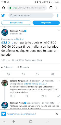 Read morePedimos una pizza en línea y tardaron más de una hora en entregarla. (Obviamente estaba fría) Al momento de la entrega me percaté que no era con los ingredientes que pedí y que tampoco habían enviado las salsas. Llamé a la sucursal y una señorita me dijo que podía comerme la pizza que me habían enviado y que me iban a mandar mi pedido correcto gratis. Ya pasaron 3 horas y cuando llamo para preguntar por mi orden solo me dan largas diciendo que ya salió el pedido, después que no ha salido por la sobrecarga de trabajo. Dude en pedir de nuevo en esta sucursal ya que una vez ya me habían quedado mal pero decidí darles otra oportunidad y...