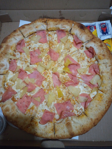 Read morePésimo servicio e intento de pizza. El día de ayer fuimos en familia y la atención estuvo muy mala. Pedimos una pizza para llevar el cajero nos mandaba a unos asientos ubicados a los baños en los cuales si uno se sienta no escucha cuando le llaman y lo dejan a uno ahí esperando de plano. Por eso pedimos sentarnos en una de las mesas desocupadas y sólo un mesero tuvo la atención de dejarnos sentar por que el cajero dijo que no se permitía sentarse en la mesa a esperar, Cómo si tuvieran mucha gente!!, o hubieran estado ocupadas todas las mesas, a penas y estaban ocupadas dos como máximo. Después, la pìzza ya estaba y el cajero nos tuvo esperando casi media hora, según él que no sabía que ya la habían llevado y lo peor que al abrirla la pizza tenía un espesor de milímetros, parecía más una tortilla (se ve en la foto muy bien), con una embarrada de queso y jamón que ni sabor tenía, la piña que tenía estaba revuelta entre algunos trozos que tenían sabor y otros secos (en la foto los de más sabor son los más amarillos). No vale la pena ya que en verdad ni sabor tiene y demasiado cara. Las pizzas de Dómino's, Hut e inclusive las de Little Caesars tienen más sabor y están más gruesas que este intento de pizza que venden en este lugar y que ni sabor tienen. No tiene nada de atención el cajero. En verdad que no se recomienda para nada el lugar. Ya perdió su sabor, antes solíamos ir más seguido, pero con la atención que tienen hay otros mejores lugares para comer mucho mejor...