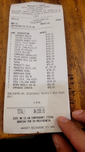 Read moreFuimos hoy la mesera tomó la orden de los siete platillos con bebidas entre lo que pedimos eran unas papas para botanear las cuales NUNCA LLEGARON👎👎😳😳 pedimos 2vuelve a la vida y decepción nos llevaron un plato con puro surimi, 1 camarón y mucho caldo mi esposo se quejó con la mesera y se llevó el plato y lo arreglaron y en un tazón negro trajeron 4 camarónes y 3 ostiones , mi mojarra al mojo de ajo le faltó cocción y un poco insípida 👎👎, media hora después trajo un cóctel de camarón pequeño (éramos 7 personas) y la mesera pésimo servicio mejor los chicos que andaban viendo que las mesas tuvieran alimentos y recogiendo platos y vasos vacíos fueron los que nos atendieron . Lastima porque ya habíamos ido ahí a comer en la planta baja y todo perfecto 👌, pero hoy se le ocurrió a mi hija hacer reservación y nos pusieron en el piso de arriba 👎👎👎. Y de repente se aparece la mesera y nos dice pidieron unas papas verdad y le dijimos que eran para botanear en lo que llegaban los platillos y nos responde a entonces se los cancelo ? 🤦♀️🤦♀️obvio . Como sugerencia cuiden mucho esos detalles porque así no dan ganas de regresar ni recomendar . Al final creemos que la MESERA ERA SU PRIMERA CHAMBA O SU...