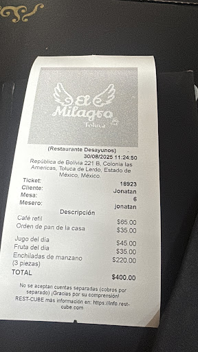 Read moreTenía mucho tiempo viniendo aquí, recomendaba con todos mis conocidos el lugar y que triste que por una situación así nunca más vuelva Hoy vine sola al lugar y desde el inicio la atención fue pésima, nadie estuvo pendiente de mi mesa y se tardaron casi 1 hora en llevarme mi platillo después de mi insistencia, no me llevaron lo que pedí y lo regresé porque excedía ya el tiempo de espera, al pedir la cuenta tuve que esperar otros 15 minutos en lo que me atendían para cobrarme, al final mi cuenta estaba dividida cobrándome 400 pesos por un desayuno que no comí y que está en 175 pesos, al hablarle al gerente la opción que me dio fue cancelar solo lo que no me comí y cobrar todo por separado o que me preparara el platillo para que me saliera en 175 pesos ( decidí pagar solo los 175 y no llevarme el platillo ya por el disgusto) recomiendo ampliamente ya no venir a menos quieran perder su tiempo y pasar...