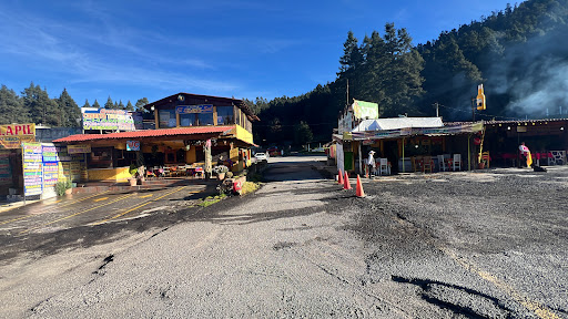 La Cabaña el Quinto Sol cuenta con estacionamiento. Muy útil también si planeas caminar en el bosque antes o después de comer. Los baños están aseados y el área de mesas también está muy bien organizada, cuentan con mesas grandes y pequeñas. También la decoración es agradable. Yo desayuné un atole de pinole, dos tlacoyos de haba, un taco de barbacoa y un jugo de naranja. Todo tenía buen sabor. Pagué cerca de $250...