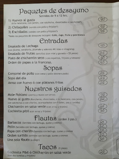 Read moreSi lo que estás buscando es comida con sabor casero este es el lugar. Aparte de lo que ofrecen en su carta te ofrece diferentes platillos diariamente. Eso sí, cada alimento tiene su propio costo, sopas un precio, plato fuerte otro, líquidos otro y postre otro así que una comida sin postre estaría en un promedio de $110 por comensal. Cuentan con buen sazón, es local completamente cerrado y espacioso, permite comer tranquilamente. No derrochan amabilidad...