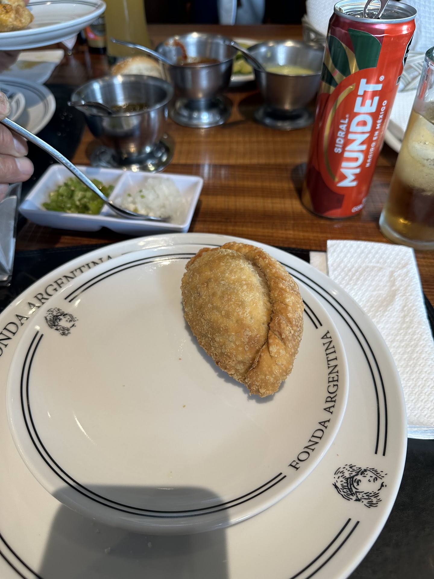 Read moreFui a celebrar el Día del Padre en junio 2025. Aunque estaba lleno el restaurante, me dieron mesa en un tiempo considerable, y, para aligerar la espera, nos obsequiaron una cerveza y agua, eso me pareció gran detalle. Los platillos los sirvieron en buen tiempo, considerando la cantidad de comensales. La relación calidad precio es buena. En total pagué un poco más de 1,000 pesos. Pedimos empanadas argentinas de carne, salmón y carne, todo estaba muy rico. De beber pedimos dos cervezas y refresco. Lo que les pediría es que la carne fuera acompañada de vegetales, papas o algo, ya que solo sirven la carne e hizo falta el acompañamiento. A los papás presentes les regalaron un pastel con vela y reprodujeron las mañanitas, también eso me pareció gran detalle. El ambiente fue bueno y pasè un momento agradable. El servicio de valet parking fue eficiente. Los baños estaba limpios. Todo el servicio en general fue bueno....