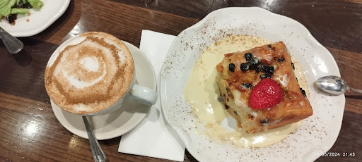 Con la remodelación se siente un lugar mas fresco y relajado, los platillos son sin duda una opción muy safe para poder elegir un lugar de comida y que el platillos no sea lo que pediste, aunque me ha pasado que una ensalada de manzana o pera tenga picante cuando no lo lleva dentro de.los ingredientes, que lleven una pasta alfredo cuando pediste otro platillo. El lugar se recomienda por si solo lamentablemente en los años que llevo de visitar esta sucursal el personal no tiene la capacidad de entender a un cliente que quisiera ver mesas limpias y platos bien servidos, sin mencionar que una vez fui al baño y tuve que hablarle a la supervisora para mencionarle que alguien se habia hecho del baño fuera de la tasa, como su fuera zona per friendly. Definitivamente solo se recomienda si tienes ganas de un budin con cafe y solo si mueres por ese postre, de otra manera evita disgustos y comete algo mas economico y que te evite molestias.