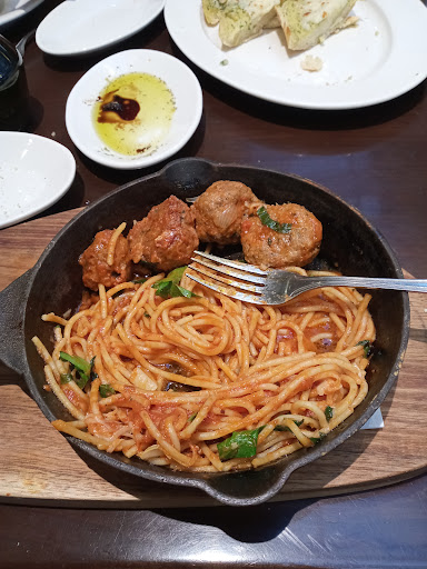 Tuve el desagrado de probar uno de los platillos nuevos de su carta llamada Maestri della pasta, este fué el espagueti con albóndigas, el sabor de la pasta no estaba mal pero las protagonistas, en este caso las albóndigas, están horribles, al partirlas del centro parecían crudas, sabían mucho a una hierba qué no pude identificar, quizás perejil, también sabían a carne para nada fresca, me tocó en la primera que comí un trozo de hueso (se ve en la segunda foto) y en la segunda un pedazo de algo que nada más no pude masticar por eso solo me comí una y media y las otras las deje, en verdad me dió náuseas el seguirlas comiendo. En cuanto al servicio pues estuvo bien pero la atención fué escasa, tardaban en regresar y no le importó a nadie que prácticamente dejara todas las albóndigas, si yo fuera parte del equipo me habría preocupado ese hecho siendo qué como ya lo mencioné las albóndigas eran lo principal pero pues se vió qué no les importa mucho. Otras veces he comido otros platillos qué me gustan mucho, los huevos al forno (mi único tema con este platillo es que luego a los huevos les faltan partes por cocer) y el omelette di formaggio me encantan, en la comida el fettuccini con pollo alla griglia y el linguini fra diavolo me encantan también, la verdad es que esta vez por probar algo nuevo me fué bastante mal, eviten un mal sabor de boca y no pidan el espagueti...