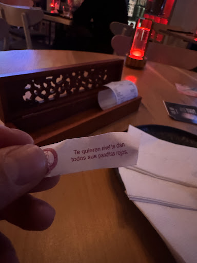 Read moreEl ambiente va dependiendo lo que busques, de un lado es más para ir con amigos, hay música (muy alta por cierto) la luz es más obscura, más ruido, perfecto para ambientar, y del otro lado es un lugar más tranquilo, para ir a reuniones, una cita, platicar, etc Yo me tuve que cambiar al lado tranquilo por qué del otro lado la música es muuuy alta, no puedes escuchar a las otras personas con las que vayas La comida es rica, no tardan mucho en llevarla, la sección de postres muy ricos también, te explican los postres y te ponen videos de los mismos para que puedas escoger sin problema El precio es regular, hay algunos platillos más caros (más de $300), sin embargo el promedio es como de cualquier lugar de sushi He visto que te dan un origami al principio en lo que toman tu orden, a mi no me la dieron, solo me dieron la toallita húmeda para limpiarme las manos y al final una hojita para escribir un deseo que colocas en uno de sus murales Me incomodó bastante el mesero, que no paraba de reírse cuando nos tomaba la orden, se notaba que era con nosotros por qué en cuanto se iba de nuestra mesa, dejaba de reírse, fatal. Te venden experiencia, sin embargo creo que no sería un lugar al que me gustaría volver por gusto. Lo del mesero se me hizo una gran...