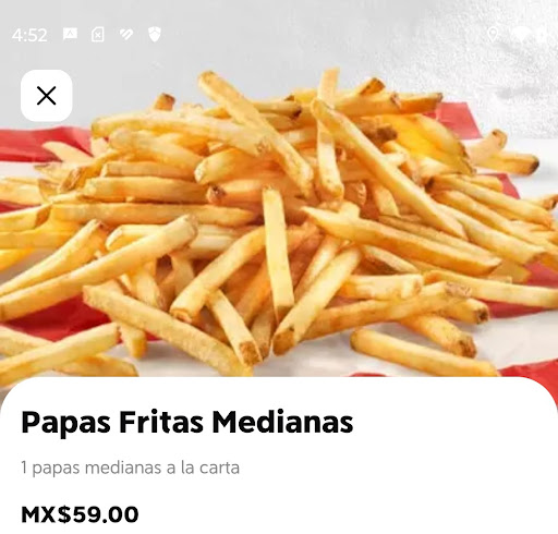 Read moreTe obligan a hacer tu pedido tu mismo, ok, es modernidad, pero siempre q lo hago al pagar me salen con que no hay paquetes de 9 tiras (q es lo q yo normalmente compro), entonces porque te lo deja pedir el sistema (sobre todo en miércoles q se supone q son tiras gratis) y NUNCA tienen piezas de pollo en receta secreta, (dicen q no lo piden y q lo tienen q tirar), entonces que pasa con los clientes como yo q si nos agrada la receta secreta, no entiendo, no pasan de un disculpe, pero no solucionan nada y las chicas que atienden prácticamente ni te hacen caso, no se, creo q ya no voy a consumir su producto y se acabó o sí es mucho el antojo voy a ir a...