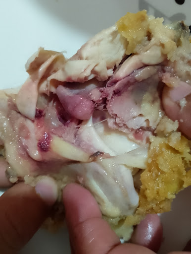 Read moreCon anterioridad no había entrado a este Kentucky en especial porque no vivo por aquí, fue mi primera visita al de esta zona porque me tocó trabajar por aca, la atención estuvo muy bien, no tuve problemas guardan todos los protocolos el detalle estuvo en el pollo, pedí un paquete de 3 piezas empecé por una pierna y noté que tenía algunas partes muy oscuras no tomé mucha importancia, después me quise comer el muslo, Y nuevamente lo mismo tenía partes muy negras Y también parece que no lo habían lavado ya que traía de esos pedacitos que se quitan cuando se lavan, cómo venitas y eso, levante la piel y estaba muy babosa Y el pollo muy negro (golpeado) me comí la parte que se veía bien, por último me quise comer el ala y al darle la primera mordida se levantó el empanizado y noté la piel nuevamente oscura como con sangre, en verdad fue desagradable, espero que tengan mayor cuídado, entiendo que pudo solo ser mala suerte,...