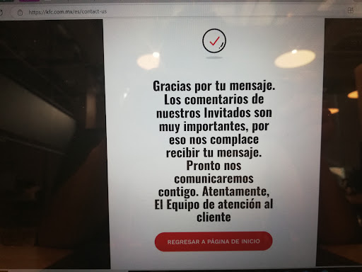 Read moreEl viernes 11 de Julio acudí con mi familia e hice mi pedido a través de las pantallas táctiles que tienen en la sucursal pero sus terminales estaba fallando y al momento de hacer el cobro marcó error, pensé que yo me habia equivocado de NIP en mi tarjeta entonces volví a pasar tarjeta y nuevamente marcó error. Al final no me entregaron mi producto porque el pedido en teoría no se levantó pero sí me cobraron las dos veces. Regresé dos dias después a sucursal a reclamar el cobro y la subgerente aceptó la falla en sus terminales (para ese dia ya tenían apagadas todas las pantallas táctiles) pero no me han querido devolver mi dinero. Me indican que marque al tel. general de KFC y según mandan correo para dar solución pero es mentira porque no mandan nada. No dan solución al problema siendo que aceptan la falla que tienen sus terminales de pago. 24 de Julio: He ingresado mi queja a traves de la página web de contacto. Veamos cuanto tiempo tardan en resolver. 21 de Agosto.: Había olvidado actualizar. Después de muchas (en verdad muchas) llamadas y correos aceptaron realizar el reembolso. Tardó varias semanas el proceso de reclamo y hay que tener mucha paciencia porque por correo no te responden ni de recibido y por llamada, cada que hablas te atiende alguien distinto y tienes que volver a explicar todo...