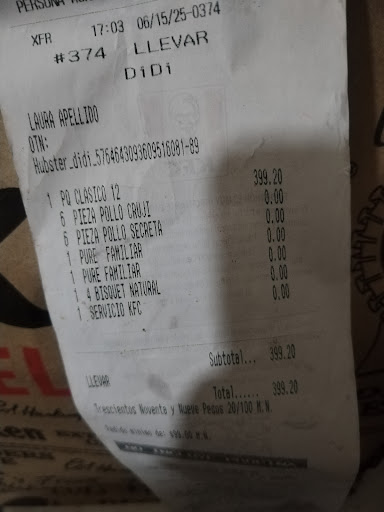 Read moreEs un lugar de comida rápida, no se espera algo de gran calidad, ni el mejor sabor, se espera rapidez, pues lo único que esperas y lo que peor les sale, se hace un verdadero desastre con sus cajas de auto cobro y demoran mucho para entregar y lo peor o les falta puré o les faltan macarrones, en mi caso entré 4:14pm, son 4:41 pm mientras escribo la reseña y no me han entregado mis macarrones, escucho al personal decirse entre sí que tampoco tienen puré, estos se cobran extra, para qué los ofrecen si no tienen, me tendré que ir por desesperación y me habrán robado porque me cobraron y no me entregaron, por si les llega a importar soy el ticket 84107-0000041 por si alguien de la empresa da seguimiento al mal servicio. No lo recomiendo, mejor váyanse a McDonalds u...