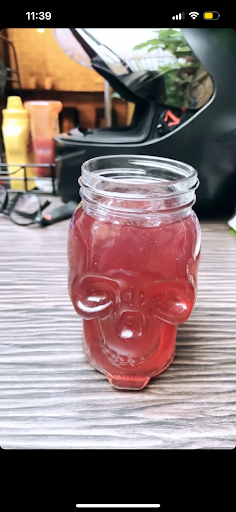 Tengo que admitir que las bebidas son muy ricas, pedimos una limonada de frutos rojos que estaba deliciosa, a decir verdad la mejor que he probado en mi vida y los vasos están muy bonitos ya que son de calavera.