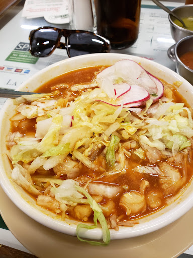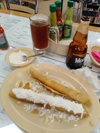 Read moreAl llegar tienes que pedir tu turno y mencionar la cantidad de personas para tu mesa, el tiempo de espera es de aproximadamente 5 a no mas de 10 minutos, la recepcionista te manda con la persona quién te indica donde es la mesa qué te corresponde, te muestran el menú/carta que se encuentra en la mesa a tamaño grande y te dan una hoja con un menú/carta pequeño para que eligir lo que quieras ordenar, la persona quién toma tu orden verifica qué lo que estés pidiendo sea lo correcto y te pregunta si quieres agregar extras a tú orden (cebolla, queso, crema, rábano, tostadas, etcétera). A la par de que toman tu orden te limpian la mesa, te ponen salsas de la casa y en caso de pedir pozole tus respectivas tostadas, así como lo extra qué hayas ordenado y/o bebidas. La comida podría tardar por mucho unos 10 o 15 minutos en llegar a tu lugar y el personal es muy atento, preguntan si necesitas algo, están al pendiente si tienes basura y la retiran. El sabor a mi en particular me gusta, pedí unos tacos dorados de pollo, ahogados en salsa verde con queso, crema, lechuga, además de que la porción es grande el sabor es muy bueno, sin lugar a dudas lo super recomiendo, lo acompañe de un agua de horchata muy buena yo con un vaso la hice, pero depende de cada quién. Cuentan con pago en efectivo o tarjeta, servicio de comida para llevar, así como servicio de entrega por aplicaciones, te indican las sucursales qué tienen y las que son de 24 horas, cuentan con números de emergencia si así lo requieres, pero en general es una buena opción.