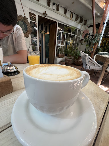 Read moreLlegamos a este café-restaurante por recomendaciones en redes sociales y mi esposo, yo y mi chaparrito nos fuimos encantados! Definitivamente uno de los aspectos que más apreciamos de este café fue el servicio al cliente, desde la entrada te reciben con un saludo amable entrando el personal te da la libertad de elegir tu asiento aunque traigas un peludito, eso se agradece! Muchos lugares son pet friendly pero te manda a una esquina 🥲 me encantó la tolerancia y amabilidad hacia mi lomito. Ahora bien hablemos de la comida, me pedí un latte y un omelette de champiñones y queso y de verdad que sabroso, presentación bonita, fotografiable y sabor exquisito! Mi única observación es que por alguna razón el queso oaxaca estaba un poco saladito pero seguía siendo delicioso. El café, cremocito y muy rico. Mi esposo pidió los huevos rancheros y jugo de naranja, todo fresco y bien cocinado. Nos dieron de cortesía un pedacito de pan de elote y que delicia, venía acompañado de una mermelada que ahí mismo elaboran, de verdad todo muy muy rico. Por último me pedí una agüita de fresa limón y jengibre y ufff fresca, bien mezclados los sabores el toque de jengibre en su punto, de verdad es de esos lugares obligados en tu vida si vas a Malinalco. Además el ambiente y la música era tan bonita que mi lomito se durmió un par de veces 🥹 por lo que comimos mi esposo y yo muy relajados. Definitivamente superadas mis expectativas de este lugar y pienso regresar! Felicitaciones al dueño no se que hace pero su personal es excelente muy amables todos y eso es...