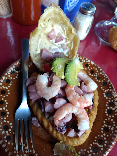 Read moreLa mojarra esta buena, los camarones no los limpian, tienen la tripa y eso no me gusta, el aguachile lo mismo, el camarón debeb abrirlo en mariposa y limpiar y no estaba así, no se si por las prisas, el pulpo demasiado duro, la consistencia se que no es tan blanda, pero más bien parecía que no se alcanzo a descongelar bien. Pedi una cerveza de mango y en lugar de que me dijeran que no tenían le pusieron boing de mando. Definitivamente lo único que puedo recomendar es la mojarra al mojo de ajo y las...