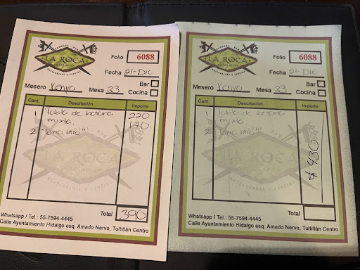 Aguas con la cuenta!! Es la tercera vez que venimos, la primera vez nos trajeron la nota, no nos dimos cuenta y pagamos lo que nos indicaba y dejamos propina del 15%, la segunda vez la cuenta se nos hizo excesiva, cuando comparamos los precios con el menú nos dimos cuenta que nos habían subido y al preguntar, la chica nos dijo que era por el servicio… MAAALL, pensábamos dejar el 15% a la chica pero cuando nos dimos cuenta de la acción solo pagamos lo que decía la nota (10%), hoy de nuevo venimos y al final le pedí a la chica que nos desglosara los precios en la nota y nos trajo una segunda nota sin la carga de servicio (he aquí la foto)…Esto amerita sanción de la PROFECO, lo...