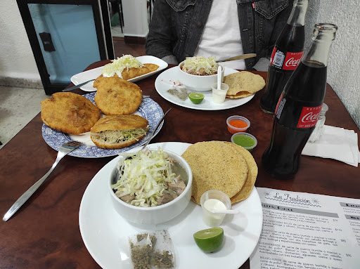 La Tradición es uno de mis restaurantes favoritos !!! y vaya que sí conozco muchos y de todo tipo, me encanta!! el lugar es super acogedor y extremadamente limpio (durante esta pandemia es el lugar donde mas segura me he sentido al comer y permanecer con mi esposo, su medidas de salud e higiene super establecidas y cuidan hasta el ultimo detalle, tanto así que las personas que no están acostumbradas les parece algo molesto o engorroso). El señor que prepara la comida te recibe siempre con una gran sonrisa y jamas toma el dinero aunque tu se lo des directamente, obviamente por higiene. Las personas que atienden las mesas son muy educadas y super amables. Sobre la comida Es la experiencia más exquisita que puede vivir tu paladar. He probado casi todo el menú y todo, absolutamente todo esta delicioso ademas que la calidad de los alimentos es completamente congruente a los costos, Mis platillos favoritos son las gorditas de chicharron con queso oaxaca (el queso oaxaca que manejan es de otro mundo, super fresco y delicioso tienen que probarlo!!, definitivamente no es del comercial): el pozole esta para chuparse los dedos!! mi esposo ama el guerrerense el Maíz es grande y no es del precocido ellos le dan una cocción completamente diferente, la porción que sirven es basta, sus tostadas son completamente artesanales, el aguacate es del mejor vale la pena su costo!!: mi bebida favorita es el agua de horchata es completamente natural y en ningún lugar he encontrado un agua de horchata tan rica como esa, tienes que probarla!!! y no puede faltar mi postre favorito el pay de queso con zarzamora se los...