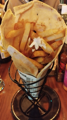 Read moreTe piden identificación así tengas 70 años, el sitio está decorado con un estilo urbano bastante bonito, la atención al principio fue pésima nosé si el mesero era nuevo, luego nos atendió otro chico y se notó la diferencia, la cerveza estaba caliente, la quería tomar con chamoy y el vaso sucio, pedí una especie de taco árabe y no le pusieron el aderezo que supuestamente debía llevar, pedí el aderezo aparte y no había,no entiendo para que lo ofrecen si no lo tienen, el pan estaba suave, el pollo y las papas,normal, los baños súper limpios, la música variadas, había un DJ pero no entendí el objetivo porque no estaba mezclando nada solo poniendo música muy alta en lo cual era imposible comunicarse. Otra cosa que me perturbó es que por ser el día del niño (supongo) la única mesera estaba disfrazada de campanita, pero un traje de mala calidad y si estába fuera de lugar,deberían ser uniformes y algún gorrito por la fecha que toque. Mejorando los detalles podrian brindar mejor atención porque en general está bien ubicado y tiene buen...
