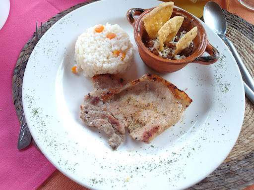 Sorry but i wouldn't recommend this place. We went for lunch and it is a very eye catching place with colorful decor. But the food didn't compare at all. It was very bland and we we're expecting a lot more for the price. Our kids got the "dedos de pollo". It came with a small piece of breaded chicken or "milanesa" basically, cut in pieces and some fries. It was ok for the kids. I ordered a "pechuga parmesana and I'm telling you it looked to be the same portion size as the kids meals. Except not cut up and with some wilted "salad", that was like 1 leaf of lettuce and 3 pieces of fruit, and some fries. So it was a piece of "milanesa" with cheap parmesean cheese sprinked on it or something. We also ordered "fajitas de pollo" it was also lacking in flavor. The portion seemed small for as much as they charged for it. Plus we asked for a coke to drink and they brought us the tiniest bottle I've ever seen. Then charged like double the price for it. The way they described the dishes and what we got was nothing like the description...