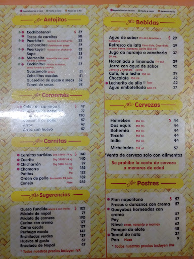 Read moreTenía curiosidad por entrar a probar las carnitas en ese lugar, no son malas , pero es demasiado caro para lo que ofrecen. Pero el punto más delicado es que al inicio te llevan quesadillas de Sesos , sin avisar que te las van a cobrar , para que tú puedas decidir si las aceptas o no. Hagan cuentas , cada quesadilla Vale 33 pesos , y si dejan una por cada persona que entra a comer . El precio en su cuenta se puede disparar demasiado. En otros lugares , si te llevan comida así al inicio se entiende que es una cortesía mientras se ordena , pero aquí no y te lo agregan a la cuenta final, las porciones son muy pequeñas para el precio de cada platillo . Sin duda ,no volveré y no lo recomendaría por...