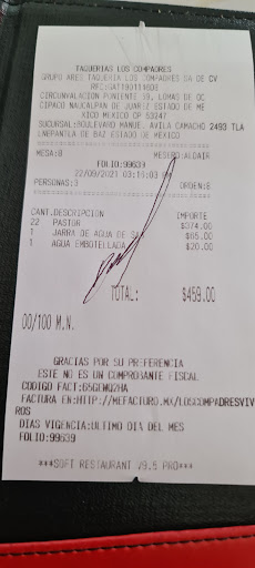 A mi parecer les hace falta un poco más de sazón. No son malos, tampoco el servicio únicamente mejorar sus tiempos creo que es un poco exagerado. Si volveré no se cuando pero cuando eso suceda pediré que la carne la pongan en la plancha porque le faltó cocción. Mi orden fue de 6 al pastor (al 2X1 o sea 12), 1 queso fundido, 1 taco de lengua, 1 gringa, 1 orden de cebollitas, 2 aguas de horchata y 1 cerveza bohemia todo por $600 ya con todo y el servicio. De momento dejo esta calificación y cuando regrese o los subo o los bajo porque me...