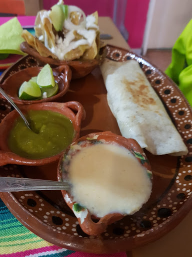 La comida es bastante buena y la atención del personal superó nuestras expectativas. Con respecto calidad VS precio está acorde y las cantidades te dejan bastante satisfecho. Le otorgo tres estrellas por lo siguiente: no tienen lugar de estacionamiento en las instalaciones y está ubicado sobre una de las avenidas más transitadas y de alta velocidad, entonces es riesgoso dejar tu vehículo al frente del restaurante. El lugar en fotos se ve muy agradable, sin embargo, es un lugar pequeño, sí está adornado muy lindo, muy mexicano, pero en sí es una casa grande adecuada como restaurante, entonces si tienes suerte de encontrar mesa en la parte del patio lo encontrarás muy agradable, ya que en la parte media del lugar y sobre todo al fondo te da una sensación de encierro y les falta iluminación, por lo tanto, para la gente quienes no gustan de lugares así, no es recomendable. La otra cuestión es que cuando visitamos el lugar no tenían música ambiental, entonces el lugar se siente apagado, sin mucha vida. Por último, el lugar tiene un toque familiar, apto como para asistir con niños y pasar un buen rato en familia o ir con tu pareja o amigos y disfrutar de muy buena comida o, en caso dado, pedir para llevar ya que el sabor vale...