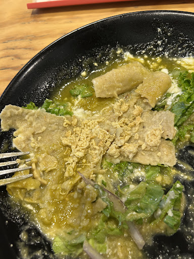Ya alguna vez fui y nos trataron muy mal. Esta vez decidí darles el beneficio de la duda pero sólo corroboré lo mallo que es. El servicio debo decir que, no había tanta gente,el chico fue muy amable. La comida fue desabrida a tal punto que tuve que pedir el salero (yo evito agregar sal extra a mi comida) y las enchiladas que pedí no tenían prácticamente nada de pollo a pesar de que las pedí con pollo extra (se ve en la foto). Además pedí una malteada que nunca llegó. Su ticket es engañoso, es decir, se aprecia toda la impresión excepto donde está el costo de los alimentos. Cuando pedimos la cuenta no nos habían mandado la malteada pero si llegó en la cuenta. Y les comentamos eso y corrigieron el ticket, pero fue por que revisamos el ticket, si alguien no lo hace pues paga algo que no consumió. En pocas palabras quedé insatisfecha ya que prácticamente comí tortilla con...
