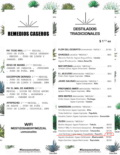 Los mezcales de otras partes de México como por ejemplo el oaxaqueño, por mencionar uno; son de muy buena calidad y sabores vibrantes. También teniendo en carta cócteles clasicos y cerveza, así como botana y comida variada.