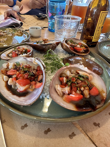 Se trata de una barrita de mariscos muy pero muy normal. Eso sí… Está de súper moda y es visitado por lo mejor de la zona así es que es de esos lugares donde la gente va a ser visto. Mercedes, TESLA y BMW en la puerta. Siempre lleno por ser trending y por ser pequeño pues su capacidad es de 40 comensales. Informal, solo comida que arranca a las 13:00 cuando los primeros tragos ya son bienvenidos. Su oferta gastronómica es muy normal pero no muy competida en la zona por lo que gana adeptos. No ofrece un sabor especial o un tipo de producto premium todo muy normalito y cumplidor, nada más, nada por descubrir. El servicio es bueno y atento. Las porciones individuales y sin mayor lujo o decorado en el emplatado finalmente es una marisquería con cocina caliente y tragos. Todo muy Fi-Fi. La realidad es que no encontré la magia a tanta demanda y ya me di el gusto de conocer y opinar. En mi escala del 1 al 10 tiene un 7.0 cerrado. Finalmente son taquitos (peques) de a $100c/u, así que de precio es alto y es un lugar al que...