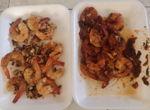 Si tuviera que dar una opinión sobre ese lugar, diría que tiene varios aspectos a mejorar. Primero, la relación cantidad-precio parece deficiente, ya que en la mayoría de los restaurantes de mariscos los platillos como los camarones al mojo de ajo o a la diabla suelen venir bien servidos, con acompañamientos incluidos. Recibir solo unos cuantos camarones da la impresión de que no hay un buen balance entre lo que se paga y lo que se recibe.