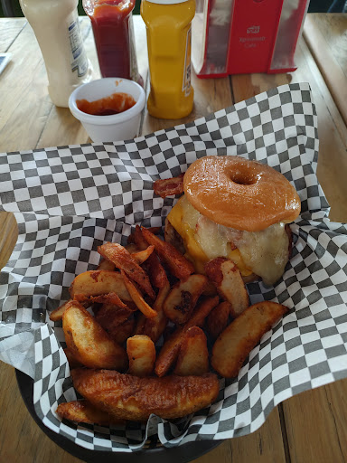 Me impresionó el lugar. Comida creativa y de excelente calidad. La persona que nos atendió siempre muy amable y con buena vibra. Probé la hamburguesa Homero para intentar algo completamente diferente y superó mis expectativas, definitivamente la volvería a pedir pero tienen tantas cosas en el menú que tardaré en probar lo mismo. Las bebidas muy ricas, sobre todo el helado que usan para los flotantes. También te prestan juegos de mesa por si no llevas prisa. Sólo les recomendaría tener un anunció más vistoso en la parte de afuera que indique que la entrada es por el estacionamiento ya que de primer vistazo parece que es un local pequeño de cortina cerrado, pero no, tiene buen espacio y lo arreglaron muy bien con temática de...