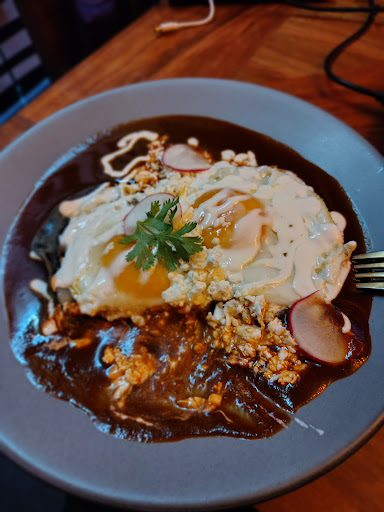 We began the day at the Botanical Gardens and continued to the Museum Bellas Artes. Which was closed but that led us to inquire and discover three wonderful museums right down the street. A conversation with personnel at one pointed us in the direction of Restaurant Portal Central. The restaurant turned out to be wonderful. As you will see from the attached menu link, the dishes are a combination of traditional Mexican fare but with interesting twists. Nahuatl figures into the menu, indigenous elements. A guacamole topped with chapulines for jus one example. I had a roast chicken served in a thick chocolatey Poblano style mole sauce, accompanied by rice, wrapped and steamed in an hoja santa leaf. Irene opted for the house recipe chile en nogada, served at room temperature and not battered. Classic. Accompanied by a courtesy house brand wine that was partly Malbec and partly Cabernet Sauvignon. The  presentation of all of the dishes was spot on. Salsas and chips and bread also served. This is a restaurant that I am already looking forward to returning to. We were pleased with everything from the decor, to the service, to the food itself. Highly...