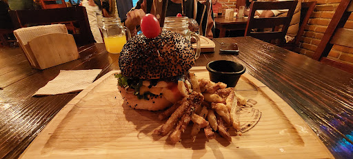 Ubicado, lugar agradable, un super trato desde la entrada y la persona que me atendió muy atento, pero me dieron unas alitas que una olia asquerosamente mal... pero bueno... no quería echar a perder el momento... se tardaron una eternindad en dos hamburguesas, que las tuvimos que pedir para llevar, por otro tema no planeado, nos las comimos en el carro y mal mal... sabían de la patada, pero horrible, peor que las alitas... tanto a mi como a mi amiga nos hizo mal al estomago... y por todo, entre las 2 bebidas fue casi 500..... Si van solo tomen una cerveza sino se quieren enfermar...