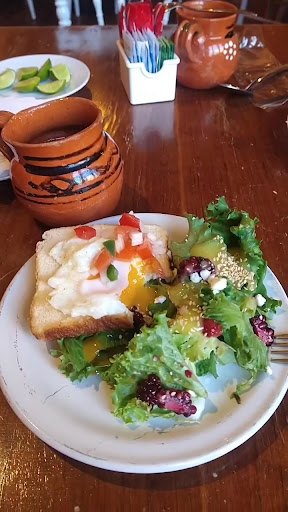 Es una casa señorial antigua, diseñada con objetos rústicos - antiguos. A mi mamá le encanta salir a desayunar los fines de semana y ya había pasado por ahí y visualice su logotipo como "la casita mexicana" e inmediatamente pensé llevar a mi mamá ahí. Sobre todo por el estilo de la casona. Fuimos un sábado y estaban las salas ocupadas, por suerte había una mesa para dos personas justo a lado de la ventana donde pegaba el sol delicioso. Aún así, recomiendo llegar temprano para tomar buen lugar. El mesero coloco los servicios y se presentó, nos llevo café, pan y dijo que en las mañana ¡es Buffet!. La comida tiene buen sabor, todo súper fresco. En los pasillos se encuentra la mesa de frutas, yogurt, granola, miel. La mesa de ensaladas, aderezos, y la mesa de los guisados, había spaghetti, arroz , frijoles, chilaquiles, salchichas en salsa roja, huevos estrellados, con jamón, revueltos o al gusto. También, chicharrón en chile verde, y quesadillas, jugo de naranja, zanahoria y toronja, cafe, licuados, etc. Puedes comer todo lo que tú quieras. El costo del desayuno fue por $200 por persona. El servicio, la comida, y limpieza al 100. Recomendable. Justo se encuentra sobre hidalgo a lado de la zapatería CLASS o del teatro del seguro social...