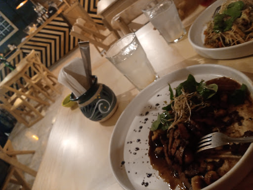 Me decidí por una pasta ñoquis, la cuál fue buena en consistencia, pero en sabor dejo muchísimo que desear, pues en ningún momento sentí una mezcla agradable de sabores que se adornarán con el romero, vino tinto y mantequilla. Lo que yo encontré fue un platillo invadido en su totalidad por la salsa de soya, al grado que la misma sirve como adorno y presentación del mismo, lo cual la hizo que fuera una pasta predecible, aburrida y un tanto desagradable, pues con solo mirarla sentías el sabor de la misma;