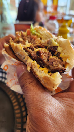 Son las tipicas hamburguesas caseras que conserva el sabor de carbon, un tamaño moderado y carne fresca. Definitivamente el contraste entre el sabor y el costo es muy equilibrado, el lugar ya tiene algunas mesas deterioradas, pero si prefieres buena comida contra un lugar bonito este lugar definitivo va a complacer tu paladar. Ojo no son hamburguesas hipsters con propuestas alternativas, ni del estilo de negocio americano, no son hamburguesas instagrameables, son solo un buen gusto al paladar y al estomago. Prueba las alitas y los Hot Dogs que tambien son una buena alternativa.
