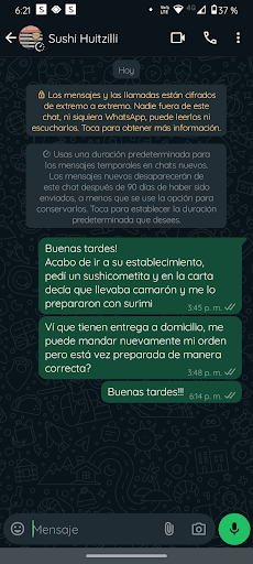 Read moreMe recomendaron el lugar, fuí y pedí rollos con camarón pero me dieron de surimi 🙄 lamentablemente me di cuenta hasta que llegue a casa puesto que lo pedí para llevar. Intenté comunicarme por llamada y por Whatsapp pero no me contestarón. No entiendo cómo le ponen buenas reseñas si el lugar es poco agradable, mienten en sus ingredientes y aparte de todo la...