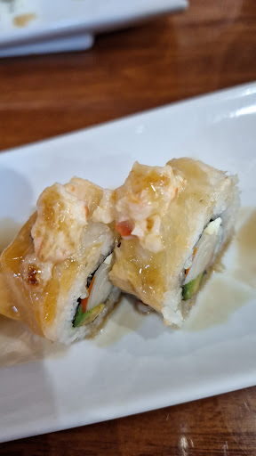 El sushi frito fue lo peor, todos los comenzales lo dejamos, incluyendo otras mesas. Era caliente por dentro y blando por fuera, además de grasoso, al parecer fue frito por mucho tiempo en aceite tibio y absorbió toda la grasa, fue terrible.