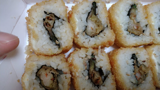 Reseña de los rollos: El arroz está muy apelmazado, el que pedí con mango apenas y tiene unas tiras demasiado finas, el empanizado estaba blando y nada crocante y demasiado frio, el sabor de ambos rollos fue realmente insípido.