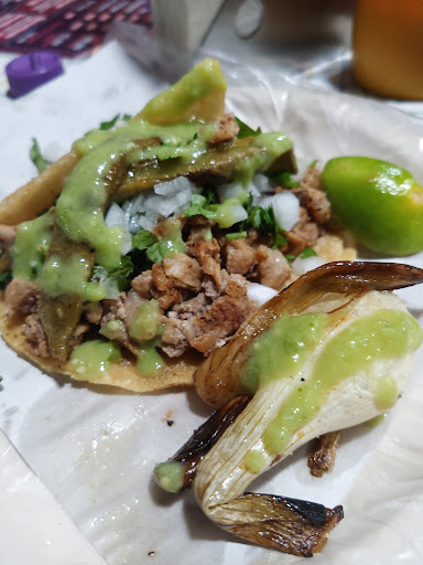 Deliciosos tacos de adobada, pechuga, obispo, chorizo argentino, arrachera, suadero y longaniza. Hay Volcanes. El precio es justo por la calidad de la comida. Depende de la carne es el costo de los tacos, salsas sabrosas. Solo abren...