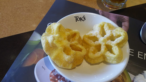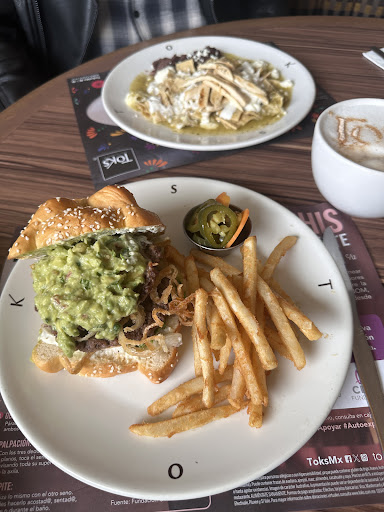 Visité TOKS para probar los platillos de temporada y en general fue una experiencia buena, aunque con detalles. Comencé con los chilaquiles verdes: buena porción y buena cantidad de pollo, acompañados de frijoles. El totopo aguanta bien y cumplen, aunque la salsa queda corta de sabor. No destacan, pero funcionan.
