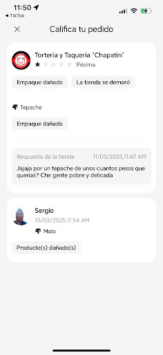 Read moreEl día de ayer pedí un tepache de 1 litro por la aplicación de DIDI lo cual no veo el inconveniente ya que en su perfil aparece como venta individual si su molestia fue que sólo comprara eso, los invito a que lo dejen de vender así o simplemente no juzguen lo que compre el cliente, no es su problema que yo solo haya pedido eso, aparte de que se tardaron muchísimo en llegar el producto llegó dañado del vaso y todo el líquido derramado dentro de la bolsa, no tuve tema en recibirlo porque aún era bebible, mi tema está en la atención que le dan al cliente solo por “un simple tepache de unos pesos”, a final de cuentas es un servicio que están ofreciendo y lo mínimo que deben hacer es dar una buena atención porque para eso es un negocio, no es el dinero que pague ni mucho menos, solamente es la terrible atención y contestaciones por parte del negocio hacia...