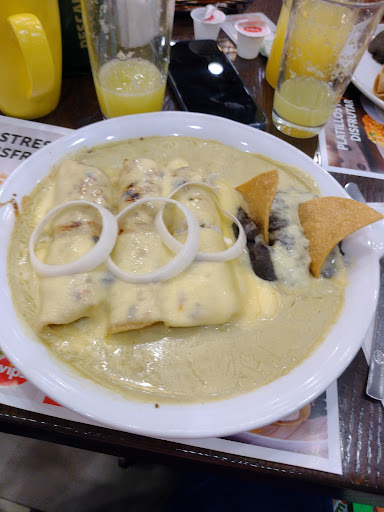 Read moreEs un buen lugar. Mi visita fue nocturna, alrdedoe de las 8 pm, estaba un poco vacío así que tenía mis dudas de si el servicio sería bueno. Al principio nos dieron la carta y yo había visto en publicidad que manejaban paquetes de cena lo cual no fue así, nos comentó la mesera que ya no había tales promociones por lo que me decepcionó, total nos sugirió convertir los platillos en paquetes por $65 pesos más. Decidí escoger enchiladas suizas y en paquete se añadió una sopa de verduras y un vaso de naranjada ($165) y mi esposo pidió tacos dorados con sopa de fideos y jarrita de agua ($185), si decides agrandar tu bebida por la jarrita son 21 pesos más, en total fueron 350 y considero que los alimentos estaban muy ricos. Sinceramente si volvería ya que quede muy satisfecha y el servicio muy amable. En cuestión de costos, creo que están elevados o bien, no te ofrecen paquetes llamativos como por...