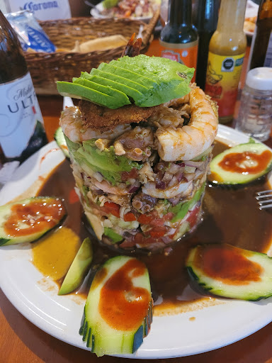 Es un lugar muy agradable, pedí una torre de mariscos clásicos super rico con la salsa negra y la de la casa decía que incluía camarones empanizados y solo era 1 como decoración 🤭 , siento que es muy similar al ceviche(por menos precio) no hay estacionamiento, el servicio esta muy bien cuenta con aire acondicionado se come muy agusto, pedí agua de jamaica aunque a mi parecer es muy dulce. Al lado de la mesa tiene un ganchito para colgar el bolso me parece un gesto muy amable. Regresaría la tortilla de camarón es deliciosa!!! Definitivamente regreso! Hay diversos precios y platillos! No cuenta con...